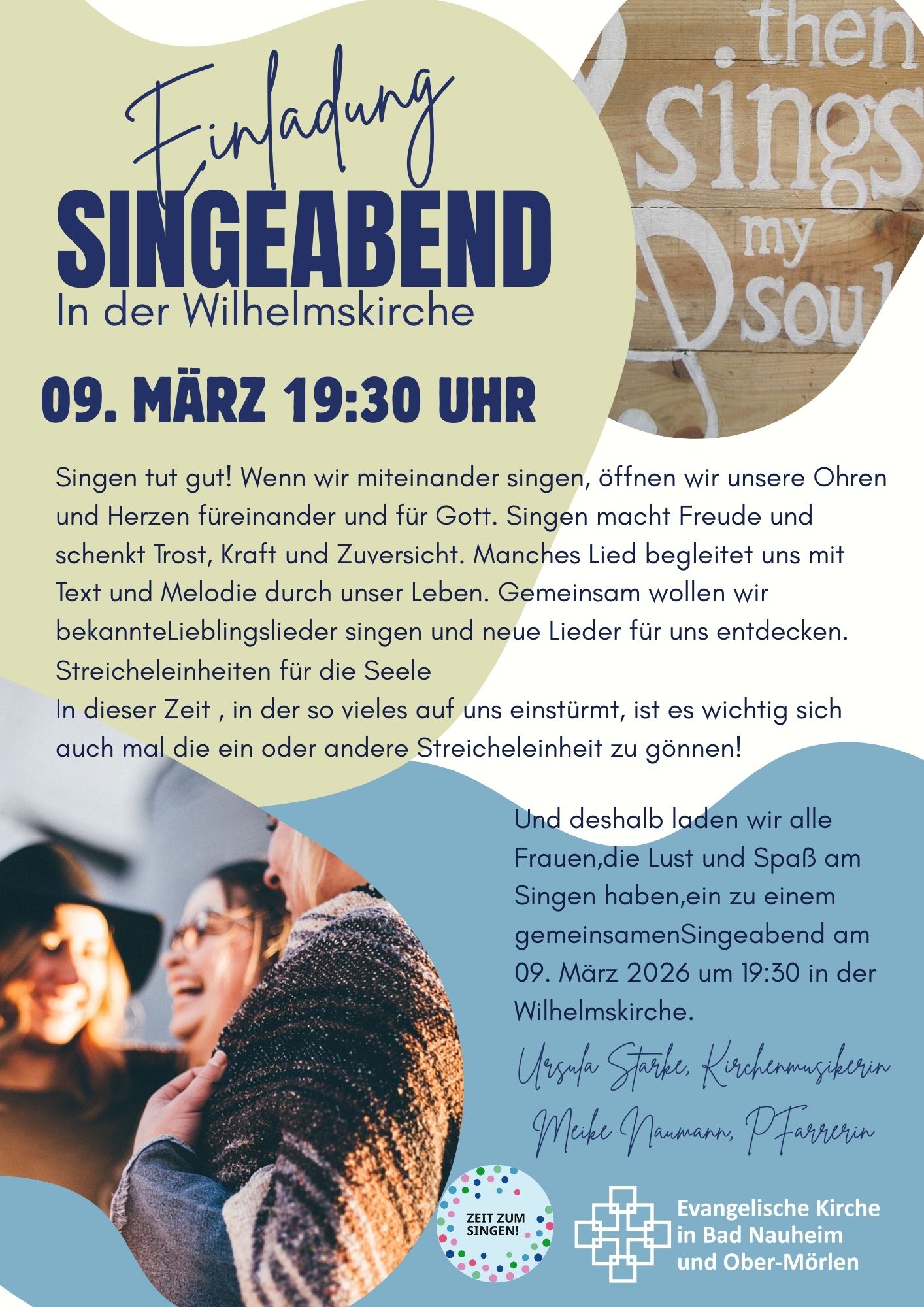 Singen tut gut! Deshalb laden wir alle Frauen, die Lust und Spaß am Singen haben zu einem gemeinsamen Singeabend ein.